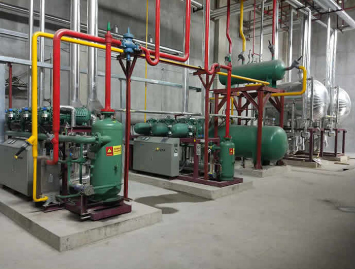 技術(shù)實(shí)現形式:制冷系統冷源采用一套滿(mǎn)液式低溫螺桿并聯(lián)制冷機組,壓縮機為德國比澤爾半封螺桿壓縮機,制冷劑采用 R22, 機組配一臺蒸發(fā)式冷凝器,型號為:SWL-900,供液方式采用桶泵供液,末端蒸發(fā)器采用上下雙翅型鋁排管。